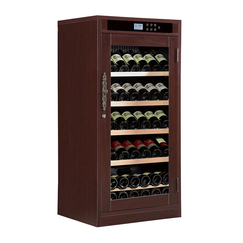 Podnieś swoją kolekcję win dzięki naszej najwyższej klasy chłodziarce do wina z drewnianą ramą, zaprojektowanej tak, aby zachować Twoje najlepsze roczniki w idealnym stanie. Stworzona dla entuzjastów i koneserów wina, ta elegancka piwniczka łączy ponadczasową estetykę z zaawansowaną technologią kontroli temperatury i wilgotności.